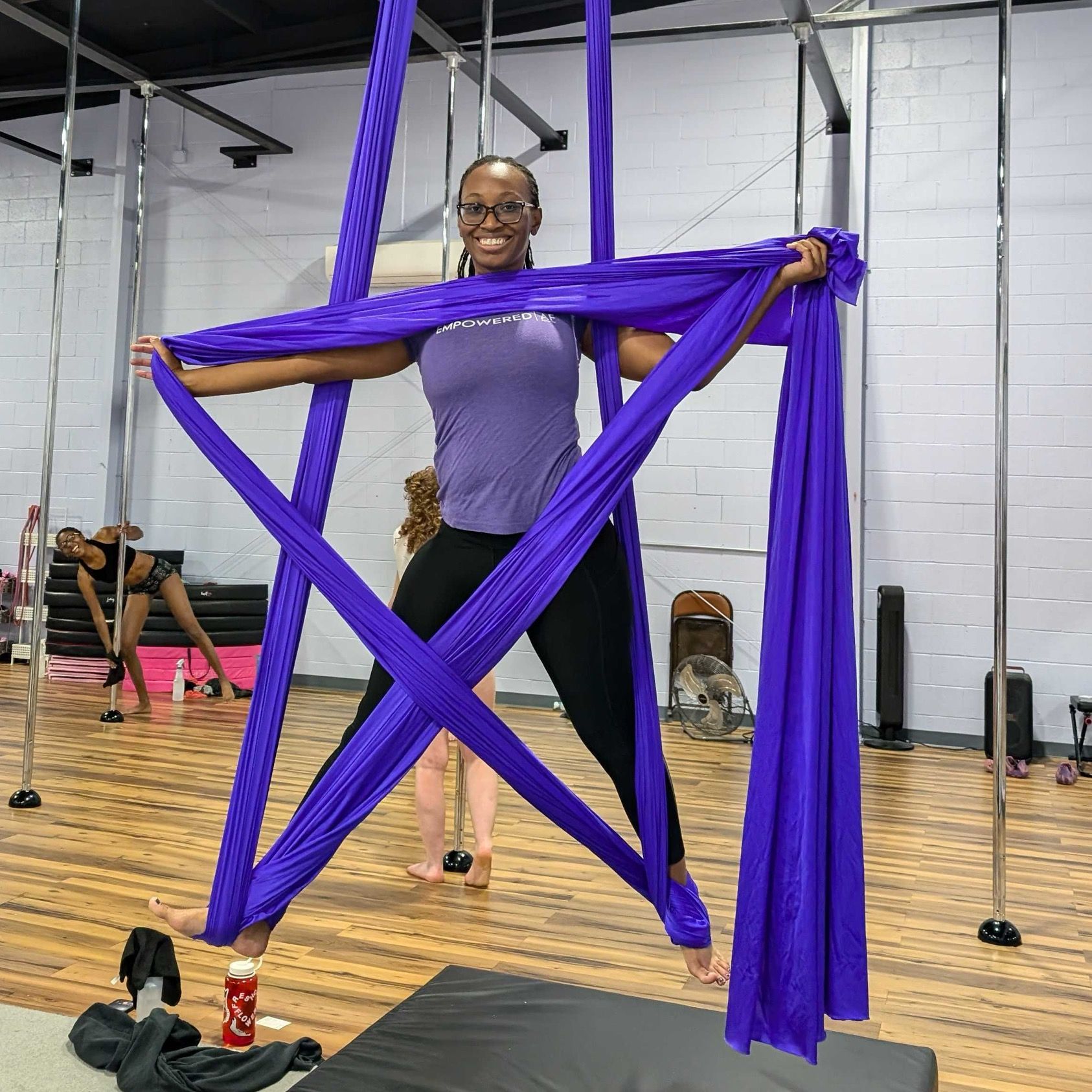 The Studieaux Heaux Bijou party is for a group of up to 8 people learning one apparatus. Choose from Pole Dancing, Lyra, Sling, Silks, Chair Dance or Twerk. This 60 minute class will get you warmed up, teach you some basics and then put it all together for a photo/video worthy choreography. The Bijou Party is a great way to get introduced to your new favorite hobby.