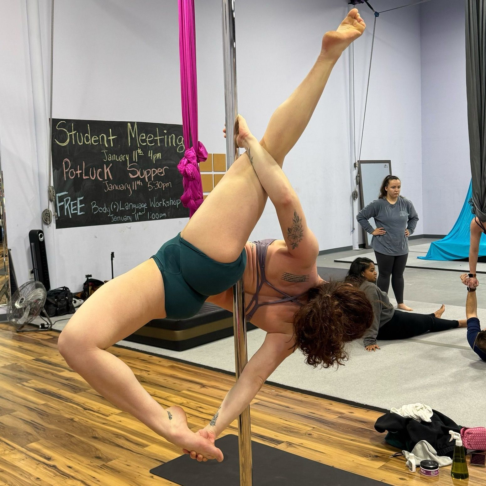 A Studieaux Heaux Juicy Party is for all of your friends. This party will accomodate up to 16 people and runs for 90 minutes. Choose one apparatus to work on: Pole Dancing, Lyra, Sling, Silks, Chair Dance or Twerk. Our instructor will get your group warmed up and then teach a fun choreography giving you plenty of time at the end for photos and videos.